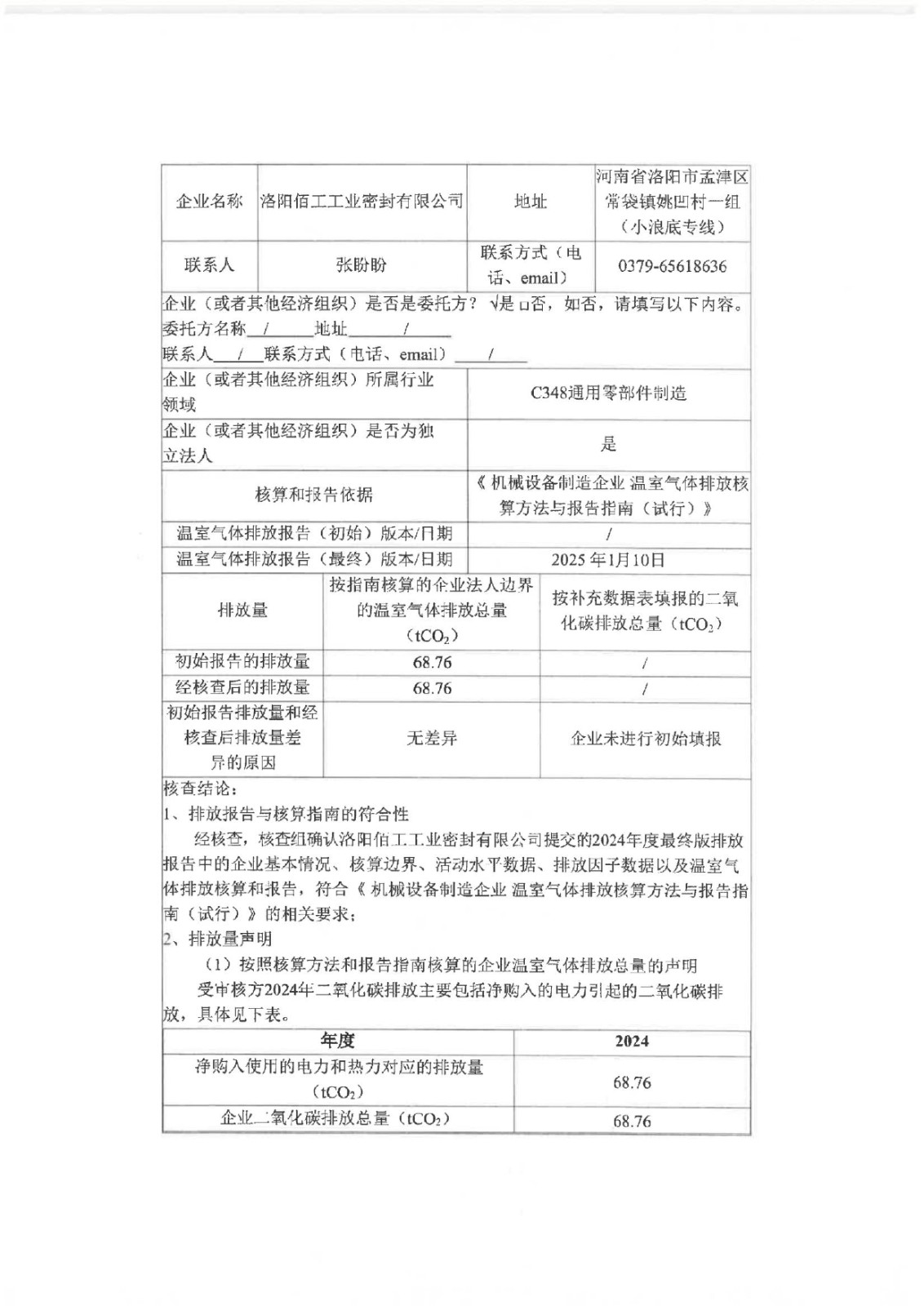 2024年溫室氣體排放核查報(bào)告
